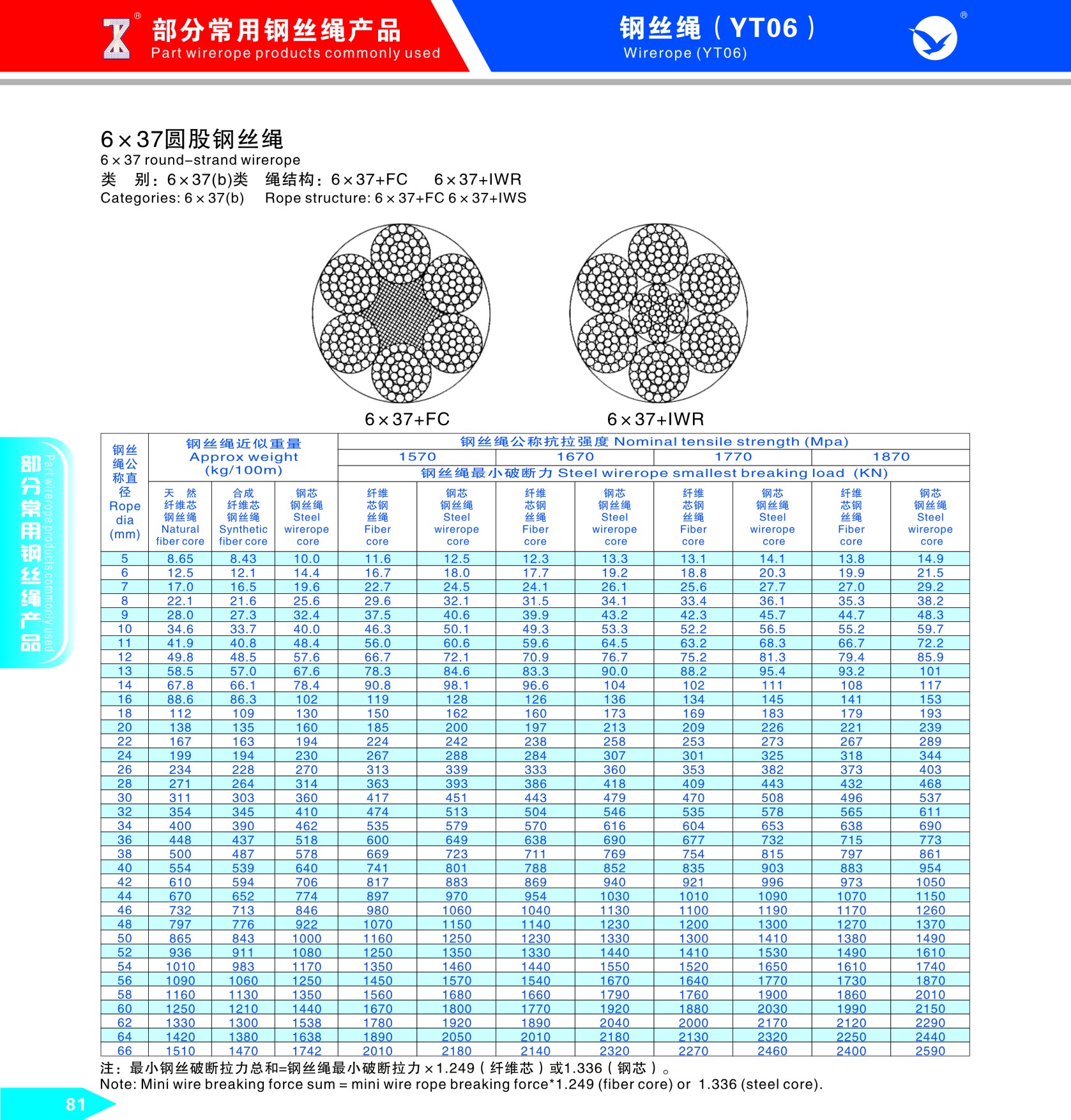 部分常用鋼絲繩產品